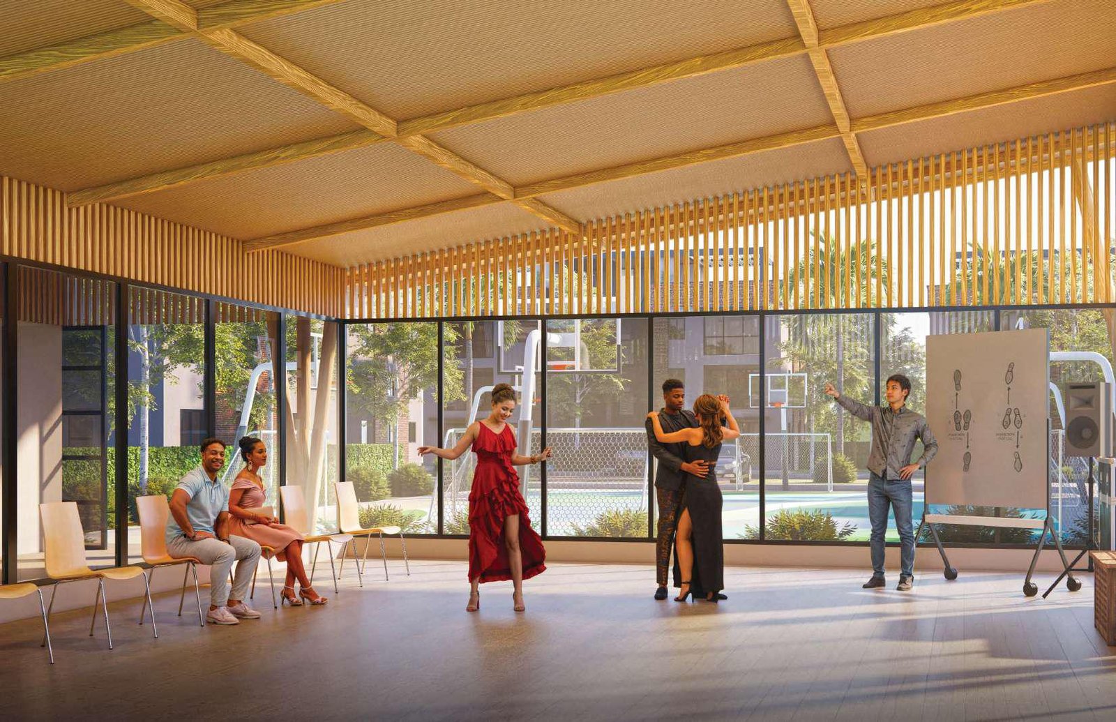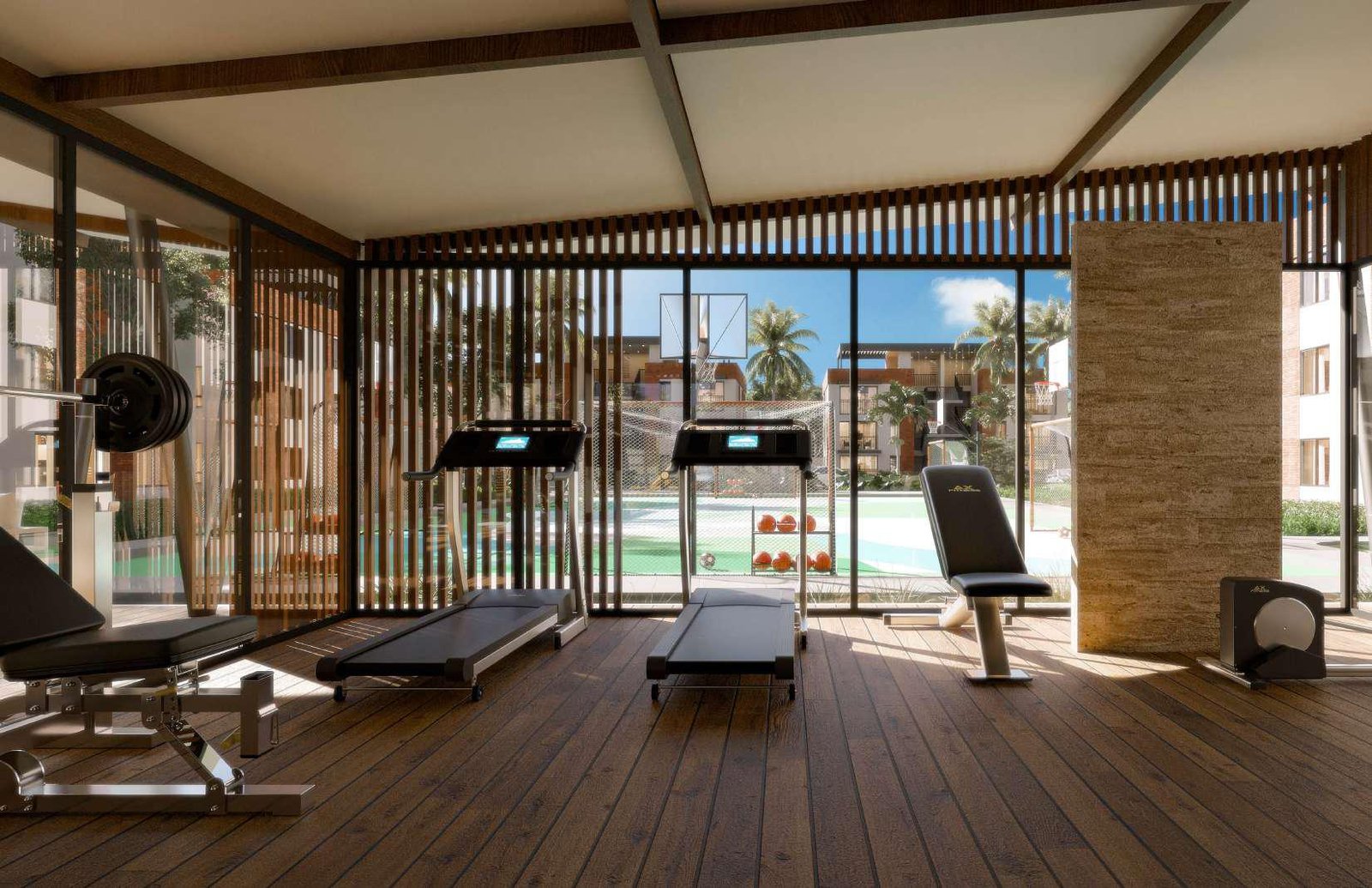 Un espacio multiuso de 561 metros cuadrados, pensado para la práctica de varios deportes grupales al aire libre.